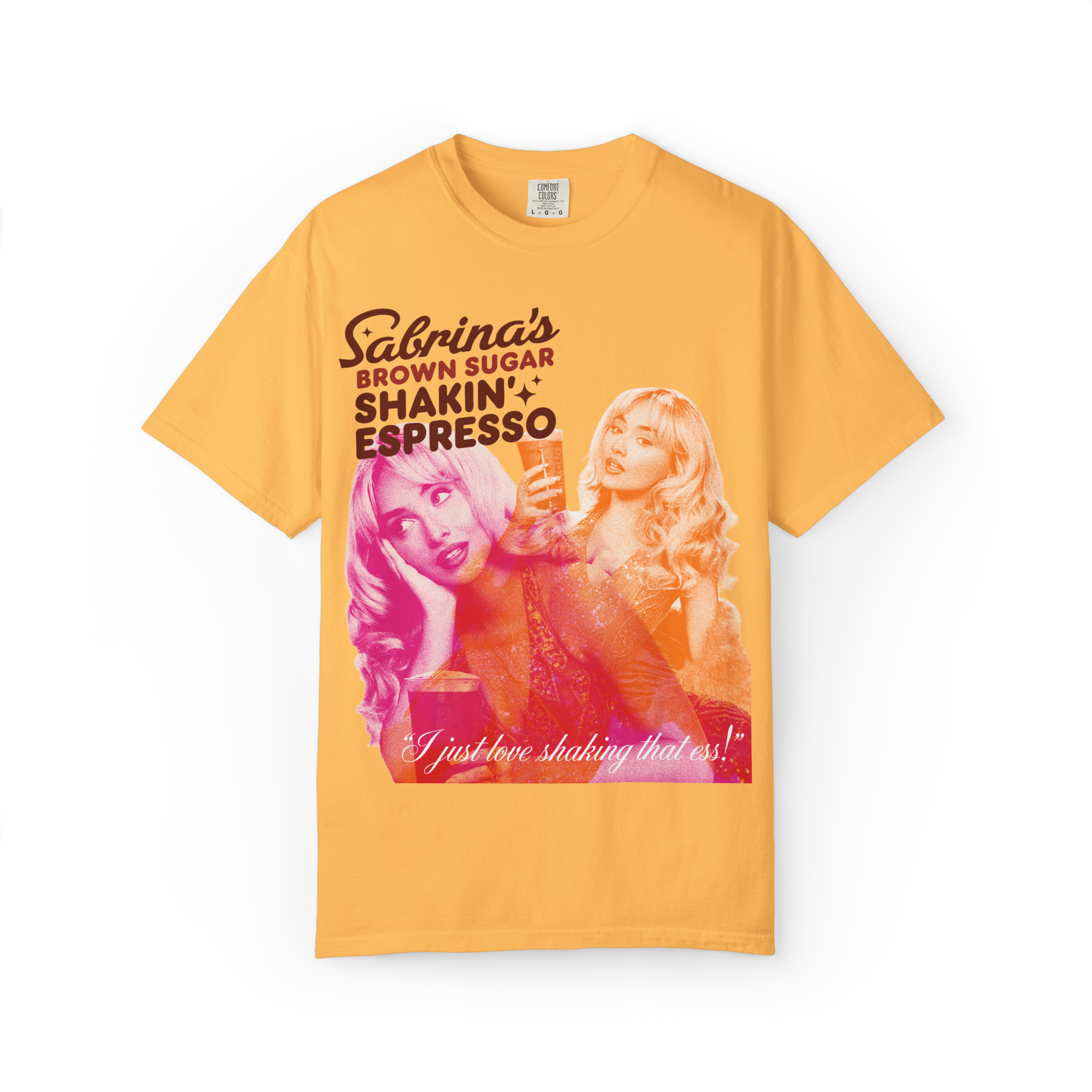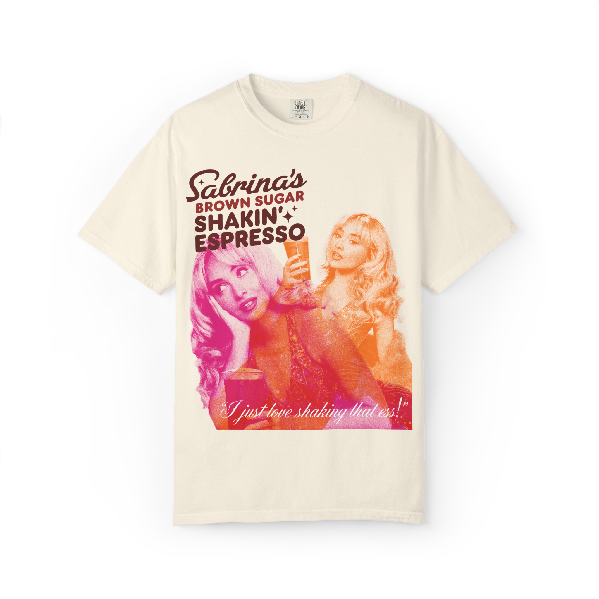 Slip into something soft, nostalgic, and effortlessly charming. The Sabrina’s Brown Sugar Shakin’ Espresso Shirt is a garment-dyed, lived-in tee featuring a retro coffee-ad print on the front—warm, sun-washed artwork that feels like stepping into a cozy diner on a slow late-morning playlist day. Its relaxed, broken-in hand makes it the kind of tee you reach for first, whether you’re grabbing a latte with friends or layering under a denim jacket for a breezy autumn walk.