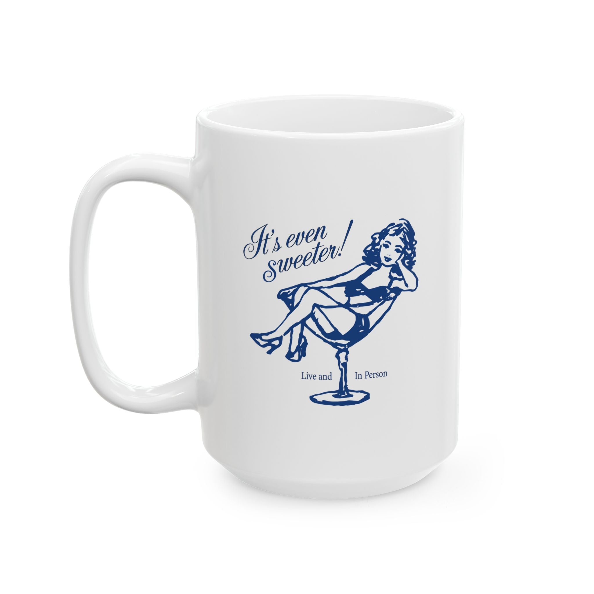 Crafted from durable white ceramic, this mug delivers a premium feel with a clean, high-quality print that celebrates Sabrina’s playful, confident aesthetic. Whether you’re a longtime fan, a collector of concert memorabilia, or a music lover who enjoys stylish drinkware, this “It’s Even Sweeter” mug is the perfect addition to your daily routine.