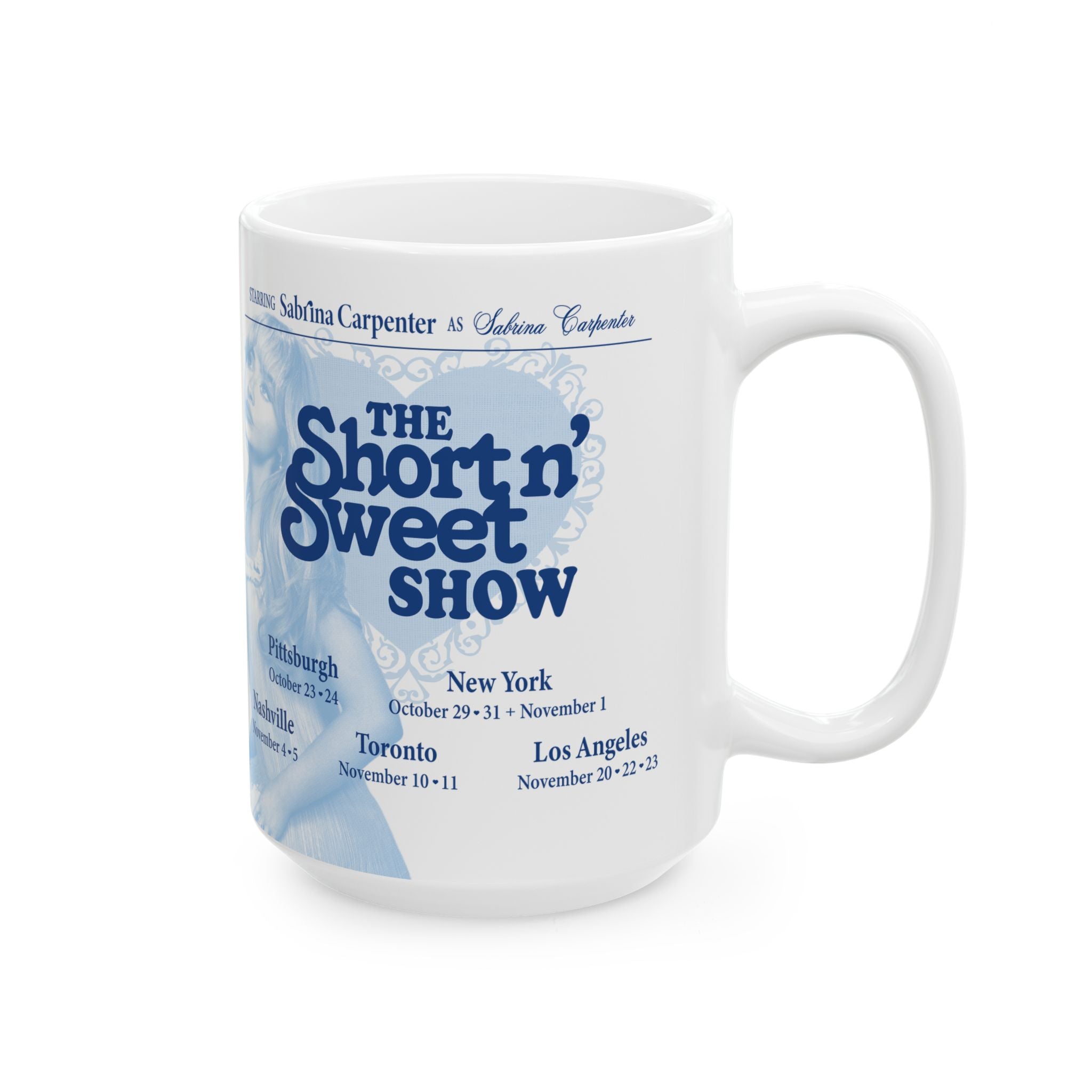 Start your morning even sweeter with this Sabrina Carpenter Short N’ Sweet Tour 2025–inspired ceramic mug. Designed for fans who adore Sabrina’s iconic pop era, this 15 oz coffee cup blends bold tour-style artwork with everyday functionality—perfect for sipping your favorite brew while reliving your favorite concert moments.